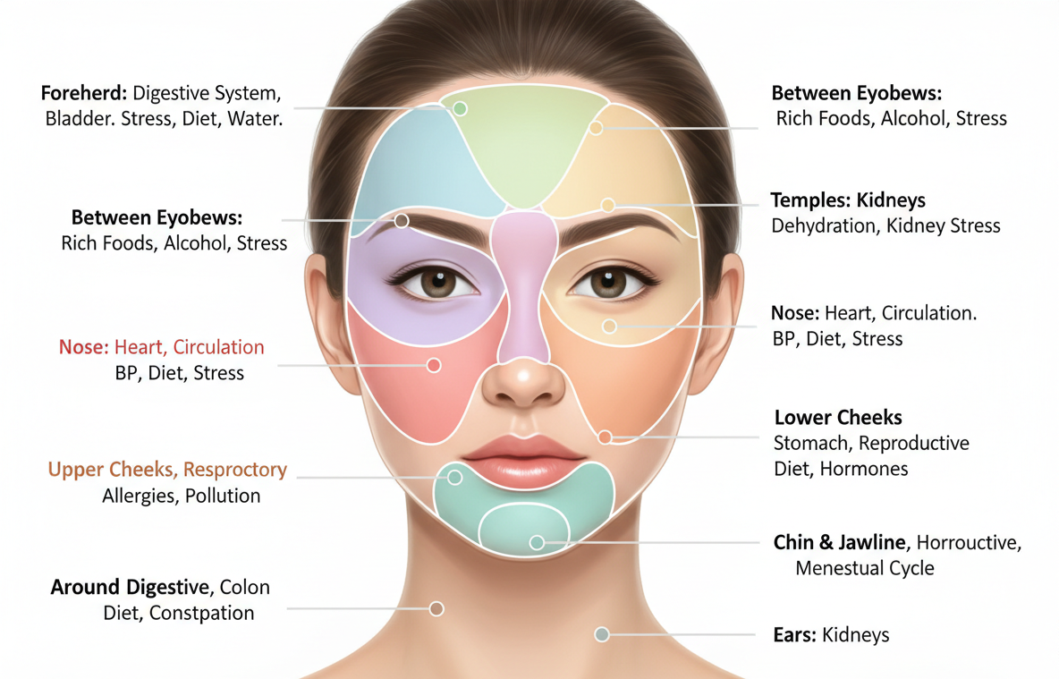 Face mapping and nutritional changes should not replace medical diagnosis or treatment. Skin concerns may arise from varied causes, including genetics and external factors. Consult healthcare professionals before making significant dietary or supplement changes, especially for persistent issues.